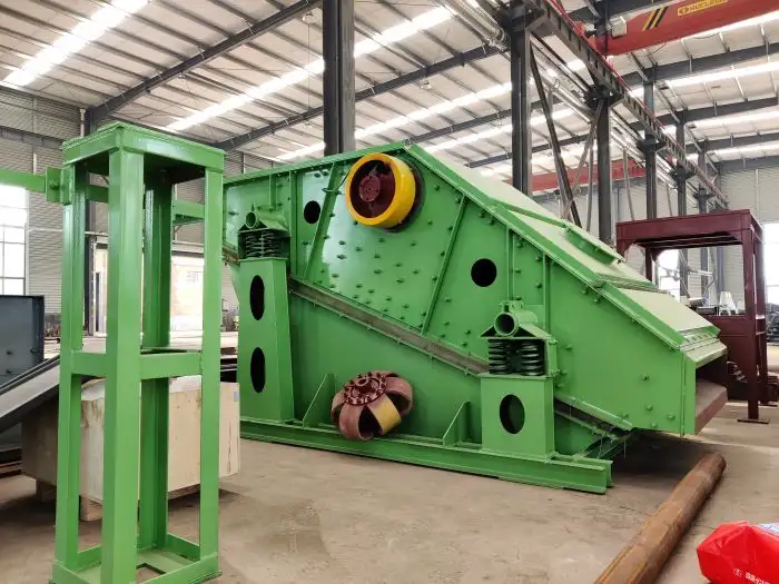 產(chǎn)品概述: 圓振動篩采用偏心軸作為激振動力,利用電機(jī)帶動偏心軸旋轉(zhuǎn)后聯(lián)動振動篩做上,前,下,后的圓運(yùn)動軌跡,使被篩分物料均勻,快速溜過篩網(wǎng)而完成篩分工作。適宜采石場篩分砂石料,也可供選煤、選礦、建材、電力及化工等行業(yè)作產(chǎn)品分級用。主要由篩箱、篩網(wǎng)、振動器及減振彈簧等組成。振動器安裝在篩箱側(cè)板上,并由電機(jī)通過聯(lián)軸器帶動旋轉(zhuǎn),產(chǎn)生離心慣性力,迫使篩箱振動。對于本系列振動篩篩網(wǎng)是主要易損件。根據(jù)物